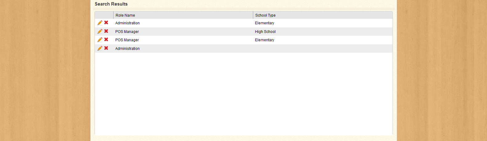 You can sort the list by Role Name or School Type by clicking the column headers. Use the