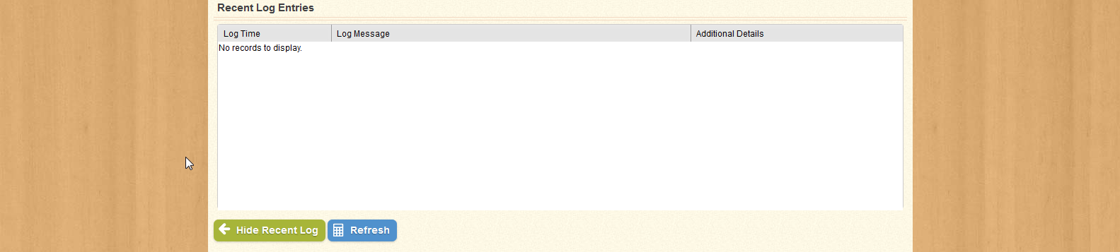 Click Refresh to regenerate the list of entries, or click Hide Recent Log to return to the previous screen.