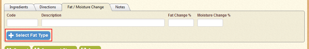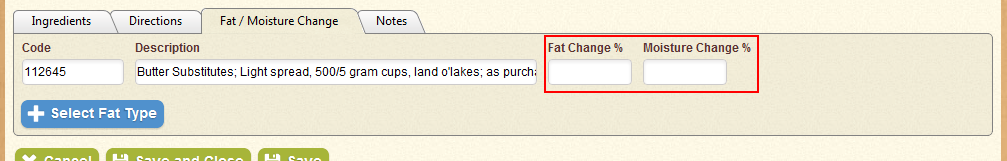 - Enter the appropriate Fat Change % and Moisture Change % in the fields provided.