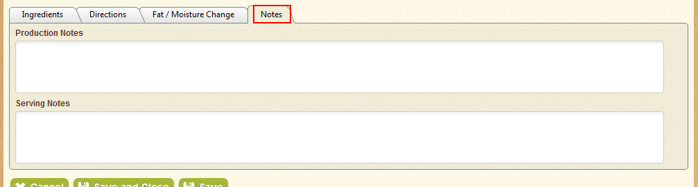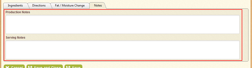 - Provide any desired Production Notes and Serving Notes in the fields provided.