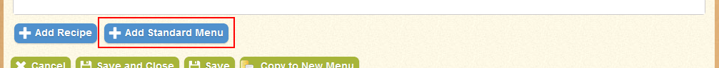 - Click "Add Standard Menu" to add a standard menu's recipes to the table, if you have created a standard menu (you can create new standard menus in Menu Planning > Menus > Standard Menus).